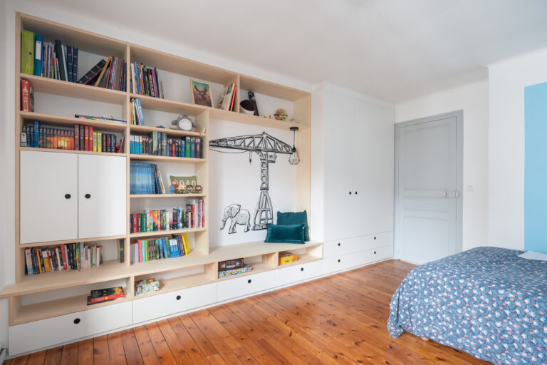 Nous créons tout type d’agencements intérieurs de maisons : meubles de rangement, dressings, bibliothèques, cuisines, têtes de lit, banquettes, espaces d’entrée ou menuiseries décoratives. Chaque élément est pensé pour s’intégrer harmonieusement à votre intérieur, tant sur le plan des proportions que des finitions.