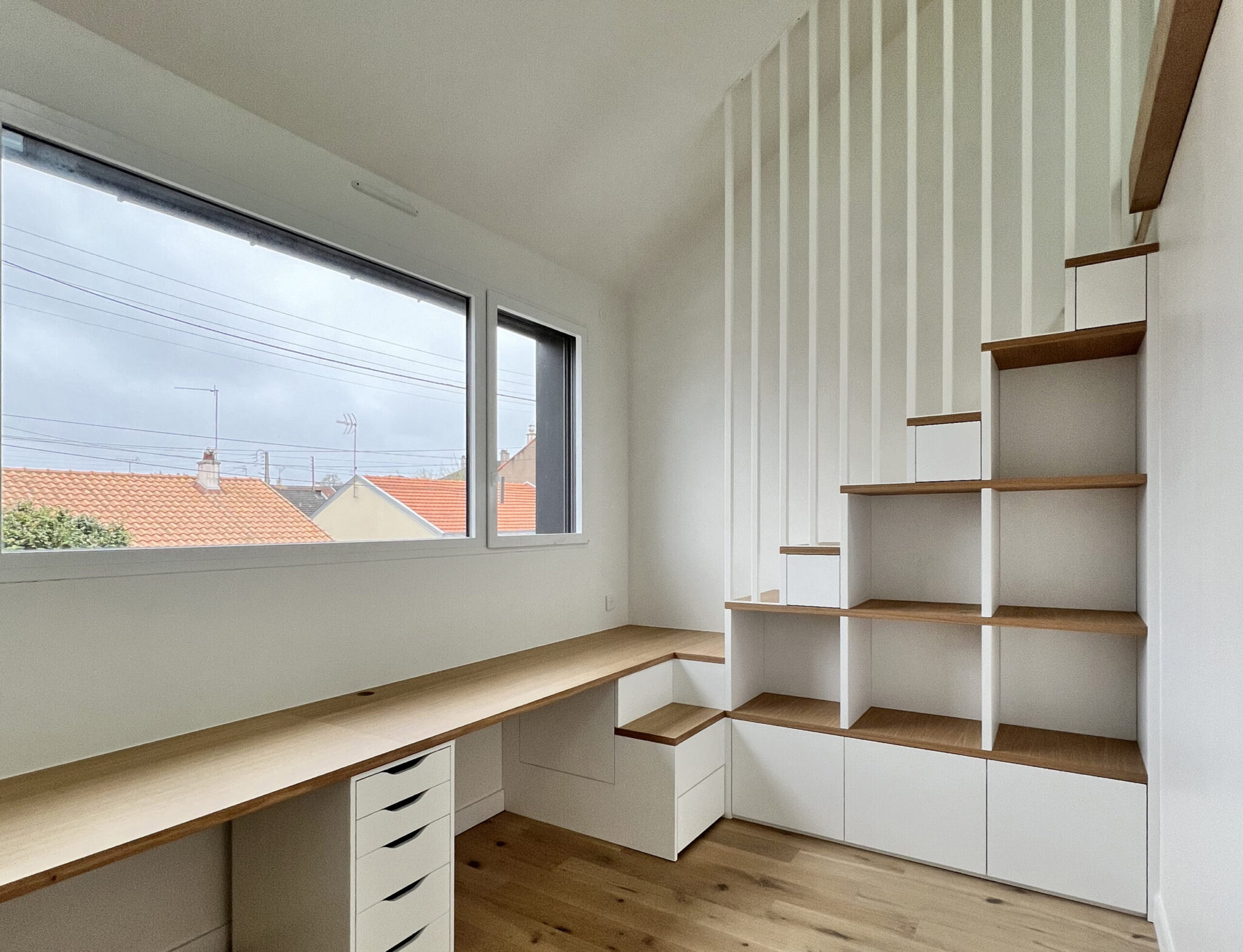 Fruit d’un véritable travail artisanal, chaque aménagement sous escalier est fabriqué dans notre atelier à Ancenis, ajusté au millimètre et posé avec le même soin du détail. L’ensemble vient sublimer l’architecture existante et redonner sens et utilité à ces volumes singuliers.